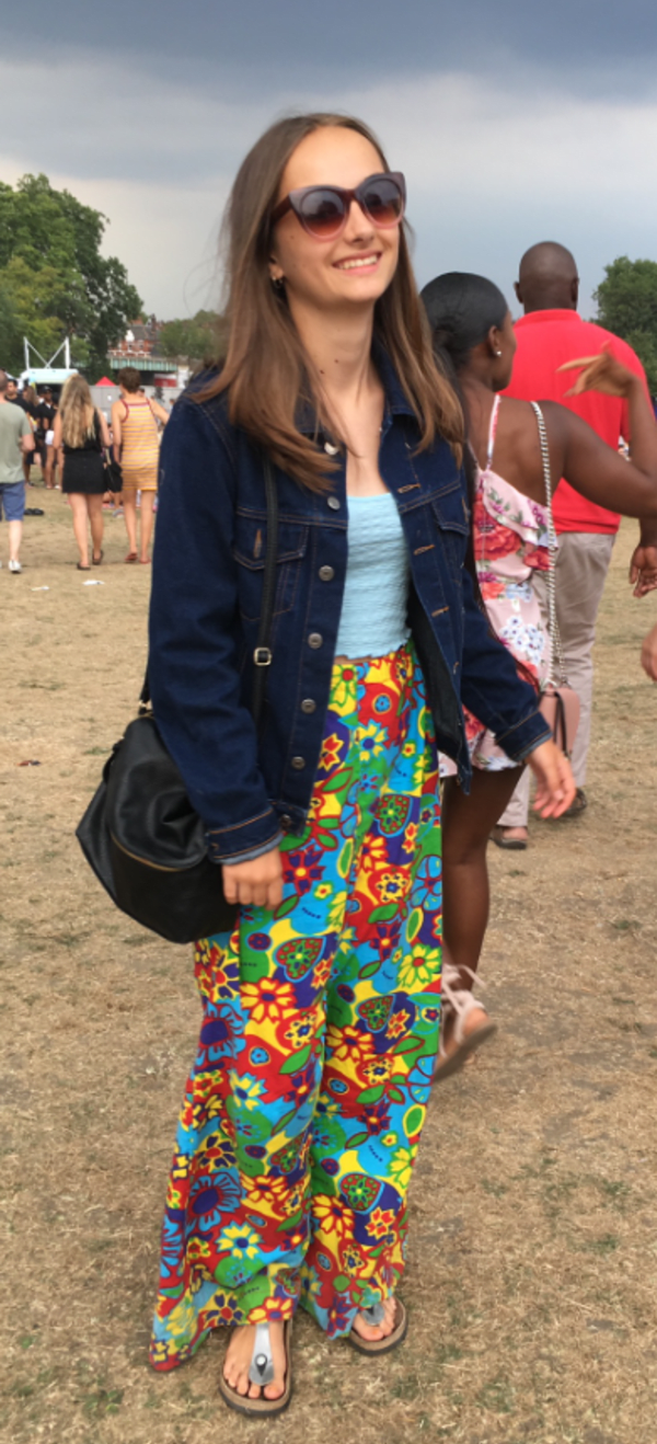 Emma Jones Summer 2018; Lambeth Country Show. One of her friends took this picture (thank you!), but Dylan and I met her later that evening at the Ritzy to see a movie (Mamma Mia I think). I vividly remember waiting to meet her outside the cinema, and seeing her strolling across Windrush Square, looking fabulous in those psychedelic trousers and her signature sunglasses, turning heads as she walked. I squeezed Dylan's hand and whispered to him, 'Look at our girl; isn't she gorgeous.' 💖