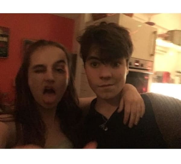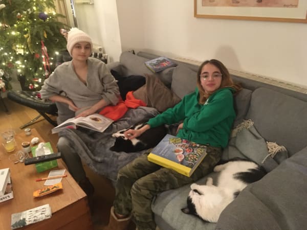 Dylan Fuller At home Christmas 2019 with sister Miss T and Pacifica (the cat).