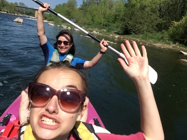 Emma Jones Kayaking down the Gorges de L’Ardeche. We got COMPLETELY stuck when we mistook an overflow chute for the kayak slide. I was starting to panic but Ruby kept her cool & we managed to get unstuck eventually; we then collapsed in a fit of giggles, which is when this photo was taken. 🤣 💕