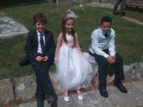 Emma Tompkins One of our happiest days. Our wedding day with the four amazing godchildren as page boys and girl (Ruby). Ruby easily managing to calm the nerves of the younger one and captivate the older ones.
