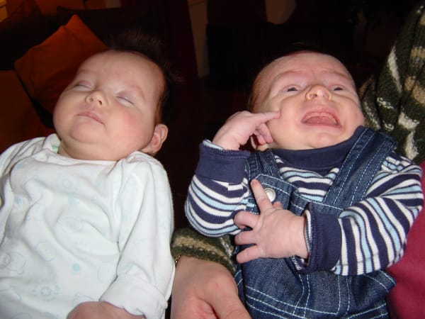 Hilary Jarvis Days old, Dalberg Rd. Ruby on the left - obviously; calm and collected from the start (Percy rarely stopped crying). I blame the parents....