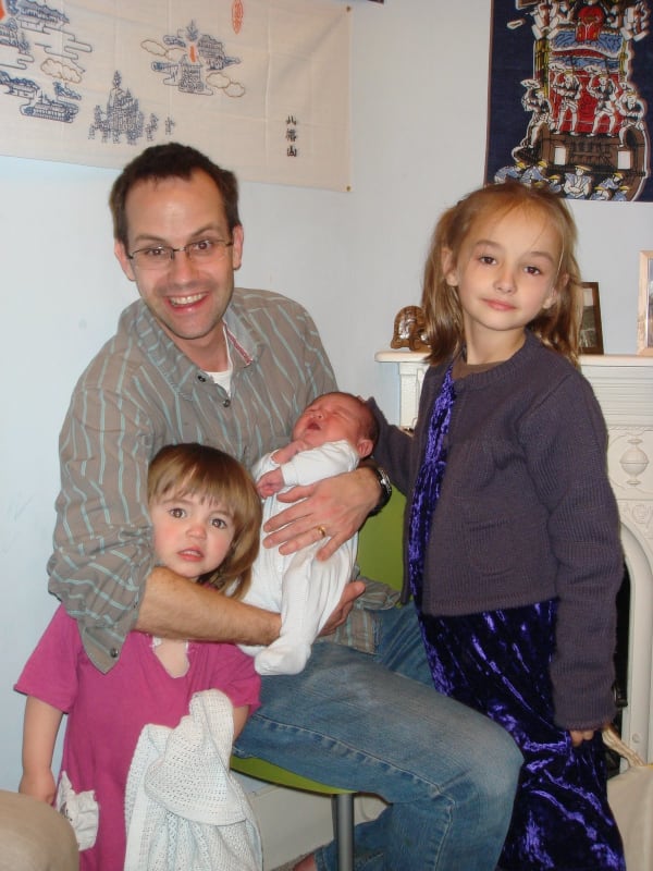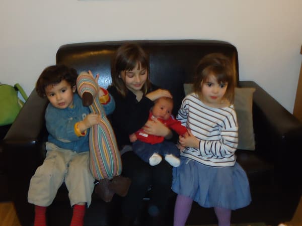 Dorian Fuller Tabitha, Dylan, baby cousin Peter and Ruby. Peter is about 1 week old.